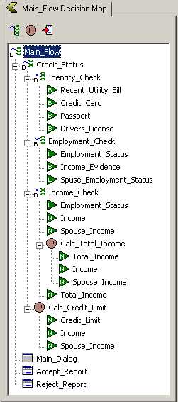 When a Decision Tree is used inside another Decision Tree the inference process will invoke the sub tree from the parent tree - a process referred to as 'Back-chaining'. Such back-chain nesting can go many levels deep. The Show Decision Map option on the Knowledge Explorer can be used to show a Decision Map for a selected Object. The Decision Map Report will show all linked Decision Trees as well as any other Objects referenced by the selected Object and its children