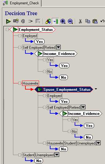 In this situation it may be helpful to collapse parts of the Decision Tree, thereby allowing the developer to focus on the part of the tree logic under investigation at any given time. Three options are provided for this purpose (accessible from the context menu after a right mouse click):