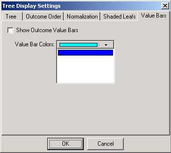 These can be added to the outcome boxes by ticking the Show Outcome Value Bars check box. The colors will be applied to the outcomes in the order that they appear on the Outcome Order tab.