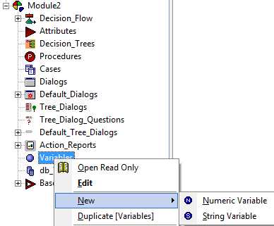 Numeric and String Variables can be added under the Variables category of the Knowledge Explorer