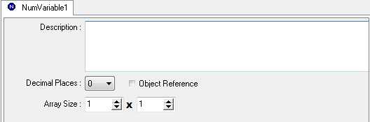 - Used as a simple global String or Numeric Variable type (when Array Size are set to 1x1) to store data processed by scripting procedures (not Decision Trees or Rules). String & Numeric Variables differs from Text & Numeric Objects in the following ways: