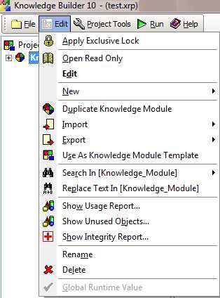 An Edit menu has been introduced which contains all the options available through the right-mouse click. (some of those options were part of the Project Tools menu prior to Release 10).